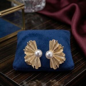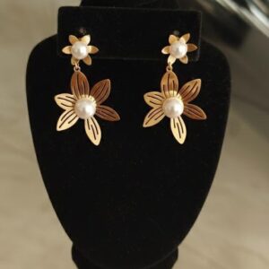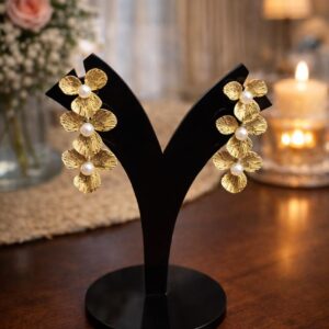 GOLD FINISHED FLORAL SHAPED EARRINGS