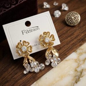 Gold plated floral stone studded Earrings