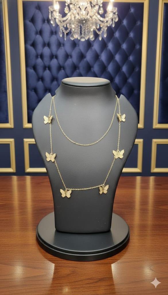 Elegant and eye-catching, this multilayer necklace features delicate butterfly accents, adding a touch of glamour and sophistication to any outfit, perfect for special occasions or gifting