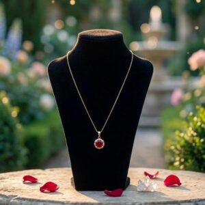 Enhance your elegance with this stunning Gold Plated Ruby AD Stone Set, crafted to add timeless charm to any occasion. Featuring rich ruby-colored stones accented with sparkling stones, this set offers a luxurious look with a refined finish. Perfect for weddings, festive celebrations, and special events, it beautifully complements both traditional and contemporary outfits.