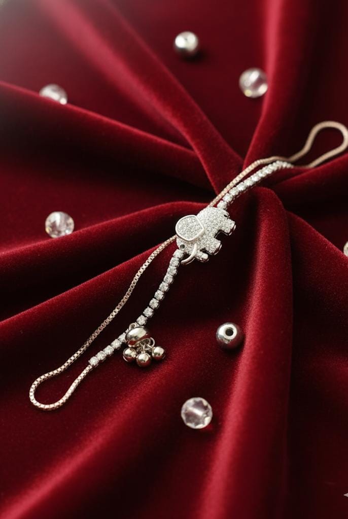 A beautifully crafted bracelet featuring an elephant motif adorned with sparkling stones, symbolizing grace and good luck. Perfect for adding a unique touch to your everyday or festive look.