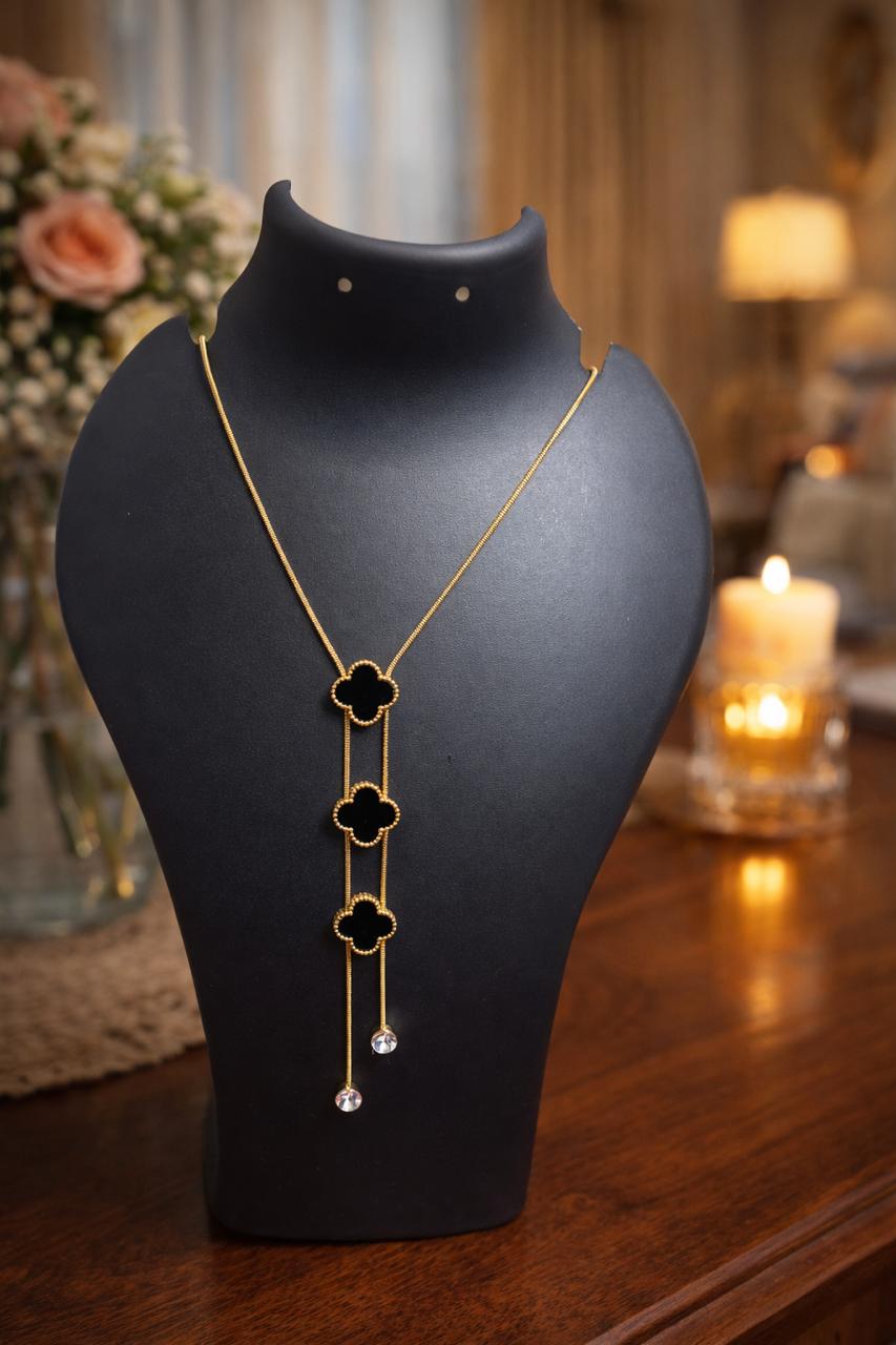 GOLD PLATED BLACK STONE FLORAL CHAIN