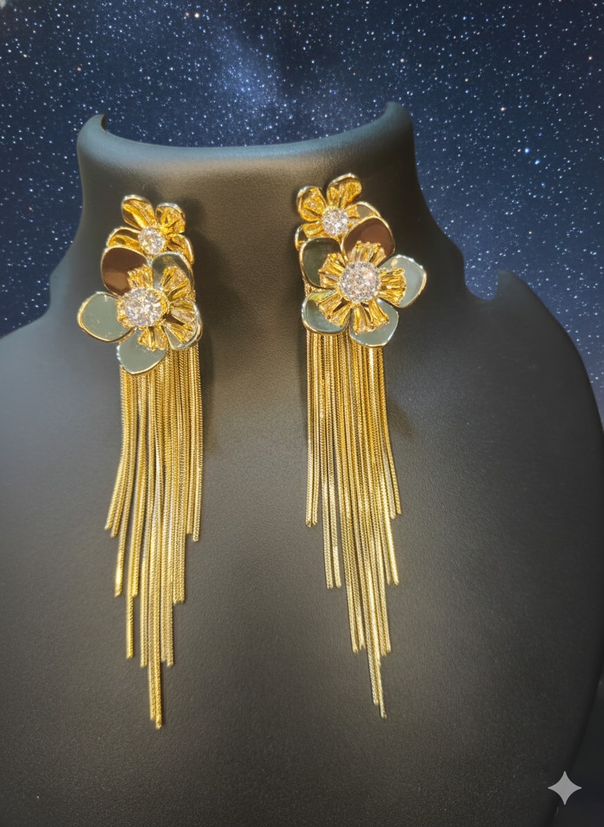 Gold Plated Floral Stone Studded Earrings – Beautifully crafted with a floral design and sparkling stones, these earrings add a touch of elegance and charm to both festive and everyday looks