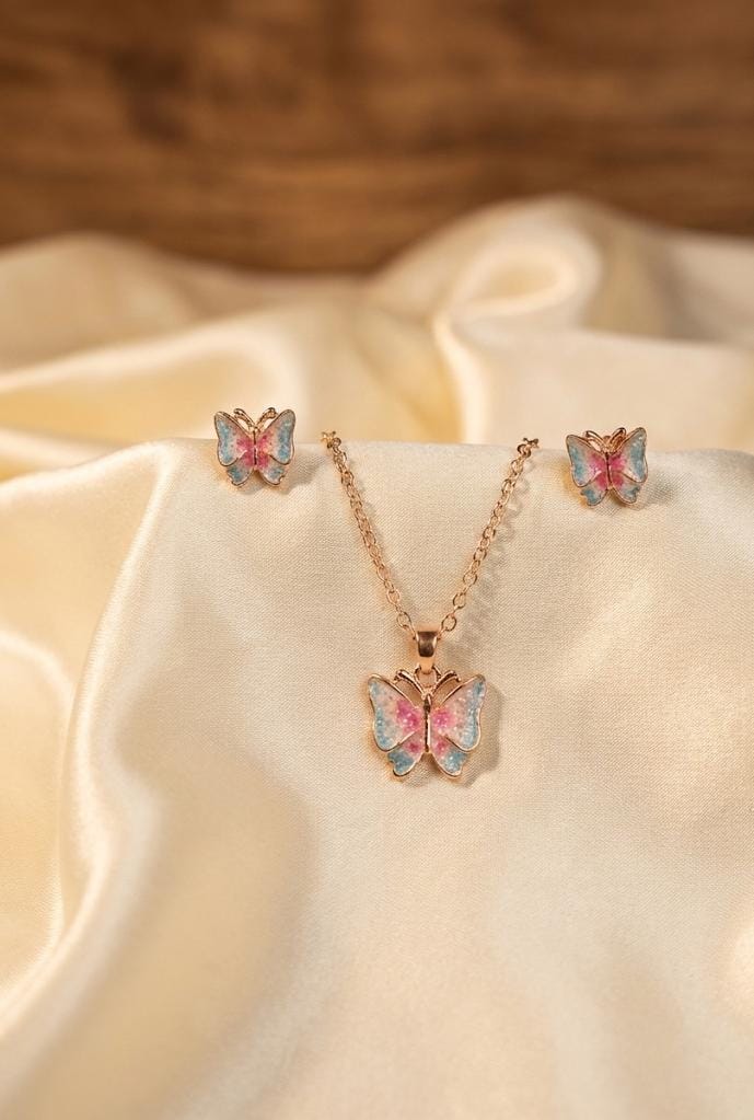 Charming multi-colour butterfly necklace and earrings set for kids.