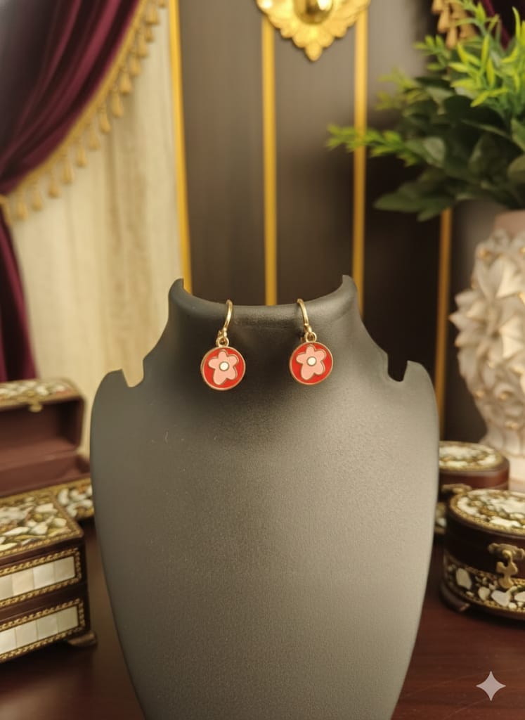 Bright red floral earrings designed to add charm and cheer to little looks.