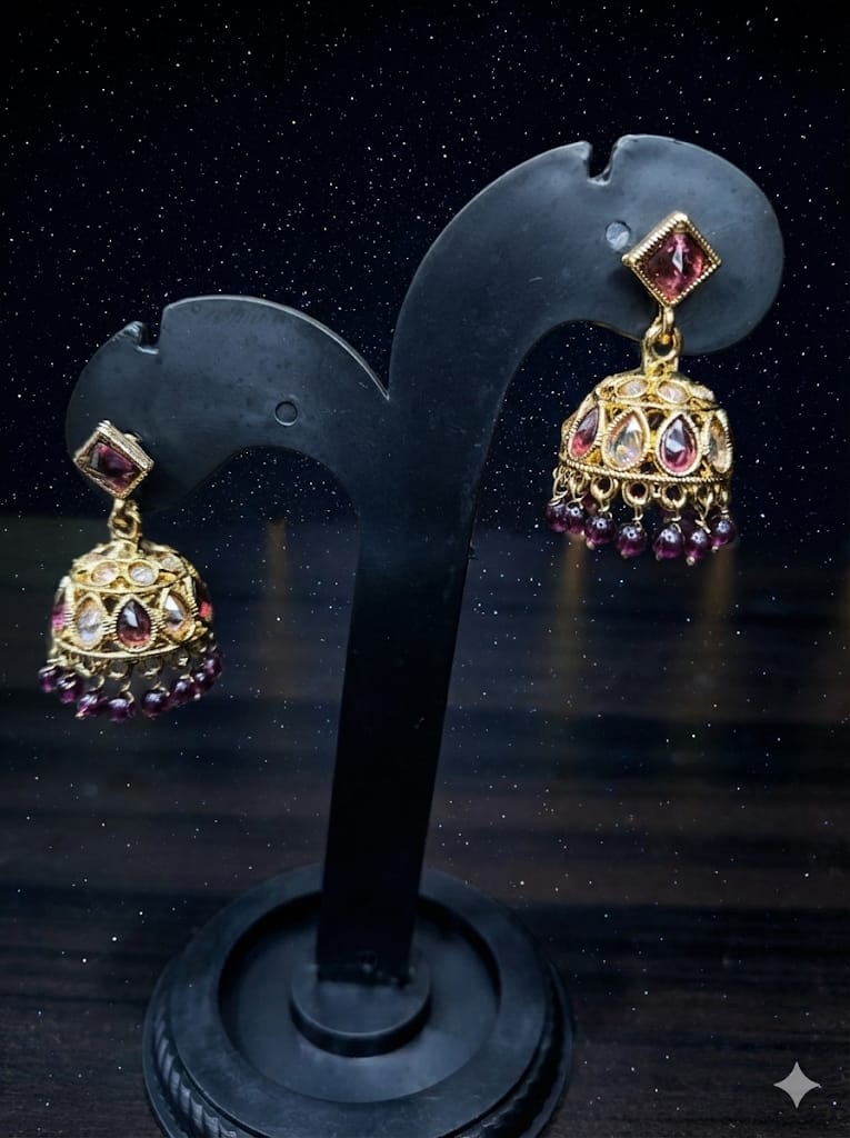 Stunning Red Stone Jhumka – Vibrant and traditional, this jhumka features exquisite red stones for a bold and elegant look, perfect for festive occasions and special events