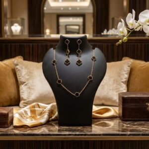 Black floral Necklace and Earrings set